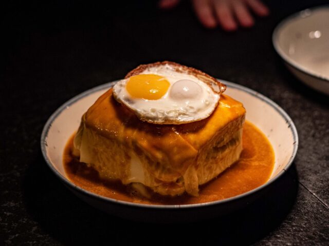 At the bar, indulge in bites like the legendary Francesinha – Porto’s famous ‘hangover’ sandwich stacked with beef, sausage, bacon, beer sauce, and a fried egg. Or try our Bacalhau á Brás – salted cod with fried string potatoes, parsley, egg and some delicious black olives.